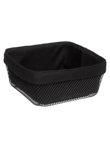 Ordentlicher Korb zur eleganten Aufbewahrung und zum Servieren von BrotPraktische Aufbewahrung von Brötchen und Brot: Ein quadratischer Brotkorb erleichtert die Aufbewahrung und das Bedienen von täglichen Mahlzeiten für Haushaltsmitglieder. Das offene Design bietet bequemen Zugang zu den gestapelten Backwaren.Metallkonstruktion: Die Korbstruktur besteht aus schwarz lackiertem Metall. Die Oberfläche ist vergittert, was einen ausreichenden Luftzutritt bietet, um das Brot länger frisch zu halten.Baumwollfutter: Die Innenseite des Korbs wurde mit Baumwollstoff bezogen. Das natürliche Material garantiert eine ausreichende Luftzirkulation, um vorzeitiges Formen des Brotes und den Verlust der Knusprigkeit zu verhindern.Größe: Der Brotkorb hat Abmessungen (Länge x Breite x Höhe) 25,5 x 25,5 x 11,5 cm.Effektives Design: Die schwarze Farbgebung des Korbs verleiht ihm einen eleganten Chic und passt zu vielen Accessoires. Der moderne MayaJ Brotkorb zeichnet sich durch Funktionalität, ansprechende Optik und Sorgfalt bei der Verarbeitung aus. Es erleichtert die tägliche Lagerung von Brot und serviert es den Haushaltsmitgliedern auf dem Tisch. Richtig ausgewählte Materialien sorgen für die maximale Frische unseres Lieblingsgebäcks. Der Korb ist solide und gleichzeitig leicht und ordentlich.