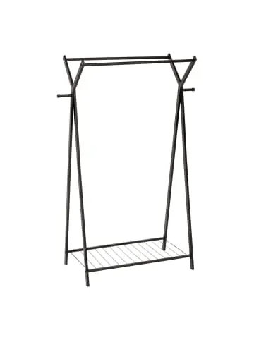 Kleiderständer METTY mit Regal und Aufbewahrungszubehör – praktisches Design, ideal für jedes InterieurPraktisches Design: Der METTY Kleiderständer mit den Maßen 98 x 43,5 x 145 cm ist die ideale Lösung zur Aufbewahrung von Kleidung in jedem Raum. Seine minimalistische Konstruktion fügt sich perfekt in verschiedene Innenräume ein. Robuste Materialien: Aus hochwertigem Metall gefertigt, bietet der Kleiderständer Stabilität und Langlebigkeit, was eine sichere Aufbewahrung der Kleidung ermöglicht. Eine maximale Belastung von bis zu 49 kg garantiert, dass er all Ihre Kleidung aufnehmen kann. Funktionales Zubehör: Zwei Kleiderhaken und zwei Halterungen für Mäntel ermöglichen eine bequeme Organisation der Kleidung. Dadurch gewinnen Sie zusätzlichen Platz für Accessoires wie Schals oder Taschen. Durchdachte Konstruktion: Das untere Regal des Kleiderständers, das nicht verstellbar oder abnehmbar ist, bietet zusätzlichen Stauraum für Schuhe oder andere Kleinigkeiten. Ihre maximale Belastung beträgt 5 kg, was es zu einer praktischen Lösung macht. Einfache Montage: Der METTY Kleiderständer ist einfach zu montieren, was eine schnelle und problemlose Aufstellung an Ihrem gewünschten Ort ermöglicht. So können Sie schon in wenigen Augenblicken Ordnung in Ihrem Raum genießen.