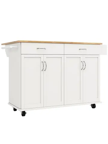 Produktmaße: Kücheninsel Länge 106 cm, Breite 50 cm, Höhe 90,5 cm.Dieser Küchen-Esswagen hat eine klappbare Arbeitsplatte und kann im ausgeklappten Zustand als Esstisch verwendet werden, die Gesamtlänge im ausgeklappten Zustand beträgt 78 cm.Leicht zu bewegen:Ausgestattet mit Rädern und mit Rädern, die leicht verriegelt werden können, kann es leicht an jeden gewünschten Ort in Ihrem Haus bewegt werden, was zu der Benutzerfreundlichkeit beiträgt.Vielseitiger Stauraum:Diese Kücheninsel bietet vielseitigen und geräumigen Stauraum, um Ihren unterschiedlichen Aufbewahrungsbedürfnissen gerecht zu werden.Hochwertiges Material:Die Tischplatte aus hochwertigen MDF-Platten (Medium Density Fibreboard) mit Holzmaserung ist nicht nur ästhetisch ansprechend, sondern auch langlebig und leicht zu reinigen und zu pflegen.Die Kücheninsel ist mit filigranen Griffen aus einer Zinklegierung ausgestattet, die nicht nur die Gesamtästhetik, sondern auch den Komfort und die Langlebigkeit der Nutzung verbessern.
