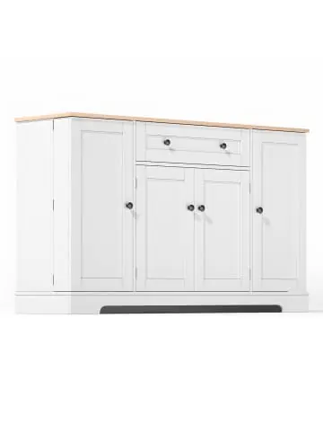 Intelligente Aufbewahrung:4 verschiedene Staubereiche: Eine große Schublade (mit leisen Schienen), ein Doppeltür-Fach und zwei Seitenschränke mit höhenverstellbaren Einlegeböden.Praktische Türregale: Beide Seitentüren haben je 3 zusätzliche Ablagen (davon eine höhenverstellbar) für Gewürze, Snacks oder Utensilien.Flexible Organisation: Passt sich durch verstellbare Böden Ihren individuellen Aufbewahrungsbedürfnissen an.Stabiles & sicheres Design:Integrierter Kippschutz für mehr Sicherheit im Haushalt, besonders mit Kindern oder Haustieren.Robuste Konstruktion aus hochwertigen Materialien für lange Lebensdauer.Modernes Design mit klaren Linien und dekorativem Sockel passt in viele Einrichtungsstile.Optimale Maße & Handhabung:138 cm Länge bietet ausreichend Stellfläche, bleibt aber kompakt.Einfache Montage mit verständlicher Anleitung.Ein stylisches und praktisches Multifunktionsmöbel, das Ordnung und Sicherheit vereint.