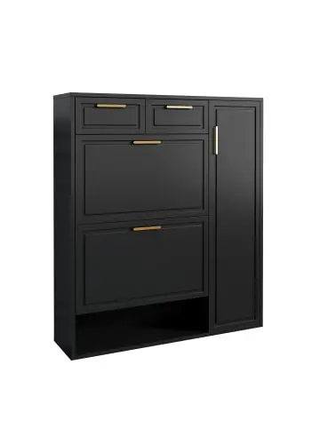 Dieser moderne Schuhschrank überzeugt mit klarer Optik, durchdachtem Stauraumkonzept und flexibler Innenaufteilung–eine funktionale Lösung für mehr Ordnung im Eingangsbereich oder Schlafzimmer.-Harmonisches Design: Klassische Optik mit glatter Oberfläche–fügt sich dezent in jedes Wohnambiente ein. -Variable Aufteilung: Verstellbare Regalböden ermöglichen eine flexible Nutzung–ideal für verschieden große Schuhe oder Alltagsgegenstände. -Mehrere Stauräume: Ausgestattet mit offenen Fächern und kleinen Schubladen–für übersichtliche Aufbewahrung von Schuhen, Accessoires und Kleinteilen. -Robuste Materialien: Gefertigt aus MDF- und Spanplatten–für Stabilität, Belastbarkeit und eine lange Lebensdauer.