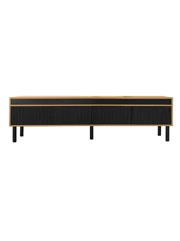 Moderner TVSchrank mit Streifendesign (170×38×47,7 cm)DESIGNHIGHLIGHTS: ✔ Drei Kontrasttüren mit elegantem Reliefmuster ✔ Schlankes Profil in Schwarz/NaturOptik ✔ Massivholzbeine für stabilen StandPRAKTISCHE FUNKTIONEN:PushtoOpenMechanismus (keine sichtbaren Griffe)Geräumiger Innenraum mit Regalen60 kg Tragkraft (für TVs bis 65 Zoll)Hinterlüftung für KabelmanagementMATERIALQUALITÄT: ▸ E1zertifiziertes MDF + Spanplatte ▸ Hochwertige SoftCloseScharniere ▸ Leicht zu reinigende OberflächeTECHNISCHE DATEN: ▸ Maße: 170 × 38 × 47,7 cm ▸ Gewicht: 26,3 kg (1 Paket) ▸ Montage: 3060 Minuten (2 Personen empfohlen)VORTEILE: ✦ Minimalistisches Design ohne sichtbare Griffe ✦ Vielseitig für Wohnzimmer oder Homeoffice ✦ Stilvolle Kombination aus Schwarz & Holztönen ✦ Umweltfreundliche MaterialienLIEFERUMFANG: ✓ Komplettset mit Werkzeug ✓ Detailierte Aufbauanleitung“Stauraum mit Designbewusstsein – Ihr neuer TVHintergrund!“IDEAL FÜR: • Moderne LoftWohnungen • Skandinavische Einrichtungen • Räume mit begrenztem PlatzHINWEIS: Farbnuancen können je nach Bildschirmeinstellung variieren.