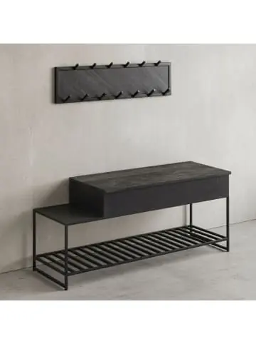 Technische Details: Abmessungen: Höhe: 70 cmBreite: 110 cmTiefe: 37 cmGröße: 110 x 37 x 70 cmSitzhöhe: 49 cmSitzhöhe maximal: 49 cmSitzbreite: 87 cmSitztiefe: 37 cm Materialien: Sitzmaterial: EchtlederMaterial Gestell: Eisen (pulverbeschichtet)Materialhinweis: Sitzfläche und Ablagefach: Mango Massivholz, schwarz lackiert. Rahmen: pulverbeschichtetes Eisen. Wandpaneel: 3D-Kunststoffbeschichtung in Gesteinsoptik auf MDF (Stein: 2 mm, MDF: 10 mm). Ablage neben Sitz: 3D-Kunststoffbeschichtung in Gesteinsoptik auf MDF (Stein: 2 mm, MDF: 7 mm) Materialzusammensetzung: 100% HolzHolzart: Mango Farben: Sitzfarbe: SchwarzFarbe Gestell: Schwarz Technische Spezifikationen: Belastbarkeit: 240 kgGewicht: 24 kg Produktdetails und Ausstattung: Gestellart: 4 Fuß Gestell Design und Wohnraum: Style: IndustrialWohnraum: Flur, Diele, Garderobe Lieferdetails und Montage: Lieferzustand: ZerlegtArtikelnummer: BARWL6.637 Highlights:Garderoben-Set im modernen Industrial-Style mit Wandgarderobe und Sitzbank aus robustem Mango MassivholzGroßzügiges Regal und Schuhregal bieten ausreichend Stauraum für Jacken, Schuhe und Accessoires Einheitliche elegante Farbgebung in Schwarz, zeitloses Design passt zu verschiedenen Einrichtungsstilen Stabile Bauweise mit Metallgestell und Anti-Rutsch-Noppen schützt Ihren Fußboden und verhindert KratzerHandgefertigt und somit einzigartig, hochwertige Materialien wie pulverbeschichtetes Eisen und strapazierfähiges Mango Massivholz Das KADIMA DESIGN Industrial Garderoben-Set ist die perfekte Ergänzung für Ihren Eingangsbereich. Das moderne Industrial-Design mit Wandgarderobe und Sitzbank aus robustem Mango Massivholz verleiht Ihrem Zuhause eine stilvolle Note.Mit dem großzügigen Regal und Schuhregal bietet dieses Garderobenset ausreichend Stauraum für Jacken, Schuhe und Accessoires. Alles findet seinen Platz und ist leicht zugänglich, sodass Sie morgens im Handumdrehen Ihre Sachen finden können.Dank der einheitlichen elegante Farbgebung in Schwarz passt dieses Garderobenset zu verschiedenen Einrichtungsstilen. Egal ob modern, rustikal oder vintage, das zeitlose Design fügt sich nahtlos in Ihr Zuhause ein und macht es zu einem echten Blickfang.Die stabile Bauweise mit dem Metallgestell sorgt für einen festen und stabilen Stand. Die Anti-Rutsch-Noppen an den Fußenden schützen Ihren Fußboden und verhindern unschöne Kratzer. So können Sie das Set bedenkenlos aufstellen und nutzen.Jeder Artikel dieses Garderobensets wurde in liebevoller Handarbeit gefertigt und ist somit ein absolutes Unikat. Mit hochwertigen Materialien wie pulverbeschichtetem Eisen und strapazierfähigem Mango Massivholz ist dieses Set nicht nur schön anzusehen, sondern auch langlebig und robust.Über KADIMA DESIGN:KADIMA DESIGN steht für Innovation und Kreativität. Wir sind Spezialisten im Bereich Design, Markenartikel und fachmännische Beratung. Unser Hauptaugenmerk liegt auf vielfältigen und hochwertigen Möbelstücken und Teppichen, die wir aus aller Welt für Sie zusammenstellen.