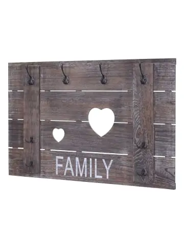 – Markeninhaber TÜV-Süd QM zertifiziert mit Nr. 12 100 59626 TMS für Qualitäts-Management in Deutschland – Lieferumfang: 1x Wandgarderobe – Lieferung erfolgt ohne Dekoration – BSCI-Sozialstandards geprüft – 4 große und 4 kleine Haken – Material: Paulowniaholz – Shabby-LookGesamtmaße (ca.):Höhe: 60 cmBreite: 90 cmTiefe (mit Kleiderhaken): 8 cmTiefe (ohne Kleiderhaken): 3 cm Hübsch hässlich, schick schäbig, Trash ist das neue Neu – und vor allem der allerletzte Schrei!! Wir präsentieren: den Shabby-Look. Die gebürstete Oberfläche verleiht jedem einzelnen unserer Shabby-Produkte einen ganz eigenen, individuellen Used-Look, der einerseits rustikal, andererseits aber auch spielerisch leicht wirkt und sich somit nahtlos in jede Umgebung einfügt, es aber auch schafft Akzente zu setzen. Ihrer Kreativität sind hier keinerlei Grenzen gesetzt. Der Hersteller ist erfolgreich BSCI-geprüft. Dabei wird der Hersteller verpflichtet, sich an soziale Standards zu halten. Geprüft werden: Managementpraxis, keine bedenkliche Beschäftigung, Arbeitszeit, Vergütung, Kinderarbeit, Zwangsarbeit (einschließlich Gefangenenarbeit und Zwangsmaßnahmen), Versammlungsfreiheit (inklusive Organisationsfreiheit und Tariffreiheit), Diskriminierung (Geschlecht, Religion), Arbeitsbedingungen, Gesundheits- und Sozialeinrichtungen, Gesundheit und Sicherheit am Arbeitsplatz (Arbeitssicherheit), Aspekte des Umweltschutzes und besonderen Schutz junger Angestellter. Auditor: HKQAA, DBID: 351271, Audit Id: 109724 Sie wünschen von einer Wand mehr als nur Ihr Haus zusammen zu halten? Mit dieser Wandgarderobe können Sie jede Wand praktisch und dekorativ aufwerten! Durch den Shabby-Look wirkt jeder Flur, jede Diele oder auch das Schlafzimmer viel wohnlicher. Acht Haken machen es möglich, Ihre Kleidung schnell greifbar und übersichtlich platzsparend unterzubringen. Darüber hinaus ist diese hübsche Wandgarderobe mit vielen weiteren Artikeln unserer Shabby-Serie kombinierbar.Versandzustand: Teilmontiert–Sicherheitshinweise für Teilartikel mit Artikelnummer 61930 Dieser Artikel ist eine Wandgarderobe und sollte nur als solche verwendet werden. Der Artikel ist nur für den Innenbereich geeignet. Überladen Sie den Artikel nicht. Vorsicht: Verletzungsgefahr! Beim Bohren in Wand oder Decke auf Kabel, Rohre sowie Gas- und Wasser-leitungen achten!Vorsicht Erstickungsgefahr! Verpackungsmaterial, wie Plastikbeutel, gehören nicht in Kinderhände. Bitte von Babys und Kleinkindern fernhalten! Nicht über den Kopf ziehen! Vorsicht: Verschluckungsgefahr! Achtung dieser Artikel kann verschluckbare Kleinteile enthalten! Halten Sie die Kleinteile von Kindern fern! Prüfen Sie den Artikel regelmäßig alle 3-6 Monate auf Beschädigungen und gelöste Verbindungen. Ziehen Sie lose Schrauben wieder fest an! Sollten Beschädigungen entdeckt werden, darf der Artikel nicht mehr genutzt werden! Benutzen Sie diesen Artikel nur für die bestimmungsgemäße Verwendung, im technisch einwandfreien Zustand und für private Zwecke. Andere Verwendungen gelten als nicht bestimmungsgemäß und können zu schweren Verletzungen und Beschädigungen führen. Für aus bestimmungswidriger Verwendung entstandene Schäden übernimmt der Hersteller keine Haftung.Allgemeine Hinweise: Bitte lesen Sie alle Hinweise sorgfältig durch, bevor Sie den Artikel aufbauen und verwenden. Verwahren Sie die alle Sicherheitsinformationen und Aufbauanleitungen gut auf. Für Ihre eigene Sicherheit und die Ihres Produktes, befolgen Sie bitte die Sicherheitshinweise. Eine falsche Handhabung könnte zu ernsten Verletzungen, beschädigtem Eigentum oder sogar dem Tod hinauslaufen.Pflegehinweise: Saugen Polstermöbel regelmäßig ab. Hat der Artikel einen Bezug pflegen und reinigen Sie diesen entsprechend nach Material (Textil, Leder, Kunstleder). Besteht ihr Möbel aus Holz nutzen Sie einen Staubwedel zur Reinigung. Für alle anderen Oberflächen und bei stärkerem Schmutz können Sie ein nebelfeuchtes Baumwolltuch verwenden. Keinesfalls sollten Sie scharfe oder scheuernde Reiniger verwenden, diese können Schäden verursachen. Für Möbel im Bad: Wasser und Kondenswasser sofort abwischen! Entsorgungshinweise: Entsorgen Sie den Artikel umweltgerecht. Überlegen Sie Alternativen zu Entsorgung wie Spenden oder Verkaufen. Elektrische Artikel gehören nicht in den Hausmüll. Entsorgen Sie diese an einem Recyclinghof für elektrische und elektronische Altgeräte, weitere Informationen erhalten Sie bei Ihrer örtlichen Gemeindeverwaltung. Einlagerungshinweise: Der Artikel sollte trocken und sauber sein, verwahren Sie diesen geschützt in dem Karton in dem er geliefert wurde.