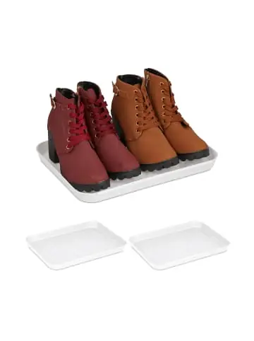 Jeder kennt es, niemand mag es: Vor allem im Herbst und Winter verschmutzen dreckige und nasse Schuhe Garderobe und Flur. Eine praktische Lösung bieten die Schuhabtropfwannen aus Kunststoff. Nasse Schuhe werden einfach in die Schuhschalen gestellt, die durch ihr Profil Deine Schuhe schnell trocknen lassen, während der Dreck aufgefangen wird. Auch zum Lagern von Schuhen im Schrank sind die Schuhuntersetzer bestens geeignet. Bei Bedarf können die Schuhtropfschalen einfach abgewaschen werden.Schuhabtropfschale im Detail- Außenmaße H x B x T: ca. 3 x 35 x 27 cm- Innenmaße H x B x T: ca. 2,5 x 34,5 x 26,5 cm- Gewicht: je ca. 200 g- Material: Kunststoff (PP) – Farbe: WeißAbtropfwanne für Schuhe im 3er Set- Fängt Schmutzwasser und Dreck Deiner Schuhe auf und schützt den Boden – Schuhmatten sind besonders an Regentagen und im Winter hilfreich- Schmutzwannen mit Profil für ein schnelleres Trocknen der Schuhsohlen- Auch als Untersetzer für die Lagerung von Schuhen im Kleiderschrank geeignet- Robustes und pflegeleichtes Material – Bei Bedarf einfach abwaschen- Leichte Schuhabsteller sind auch beim Camping oder bei Roadtrips praktischLieferumfang- 3x Schuhschale- Dekoartikel sind im Lieferumfang nicht enthalten