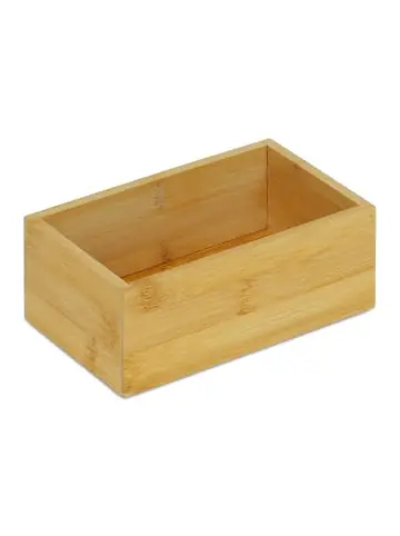 Wenn Du Dich fragst, wohin mit den vielen Utensilien und Kleinteilen, die sich in Deinem Haushalt ansammeln, dann bietet diese schöne, kleine Holzkiste die Antwort. Ob Kosmetikartikel, Büroutensilien, Gewürze oder Bastelmaterial, dank der Bambuskiste ist alles stets in Griffweite. Nutze die Holzschachtel im Bad für Hygieneartikel oder stelle sie als Gewürzkorb in die Küche. Der Organizer überzeugt nicht nur als Ordnungshelfer, sondern setzt dank natürlichen Charme auch warme Akzente im Raum.Bambus Box im Detail – Maße H x B x T: ca. 6,5 x 16,5 x 10 cm – Innenmaße H x B x T: ca. 5,5 x 15 x 8,5 cm – Gewicht: ca. 190 g – Material: Bambus, Spanplatte – Farbe: NaturVielseitiges Holzkästchen ohne Deckel – Aufbewahrungsbox für mehr Ordnung und Übersicht – Holzbox aus nachhaltigem, pflegeleichtem Bambus – Natürliche Maserung in warmen Holztönen für stilvolle Aufbewahrung – Ideal als Besteckbox oder Gewürztablett in der Küche – Badaufbewahrung für Kosmetik, Hygieneartikel oder Shampoo – Büro Organizer für Schreibutensilien, Bastelmaterial oder NähzubehörLieferumfang – 1x Bambusaufbewahrungsbox – Dekoartikel sind nicht im Lieferumfang enthalten