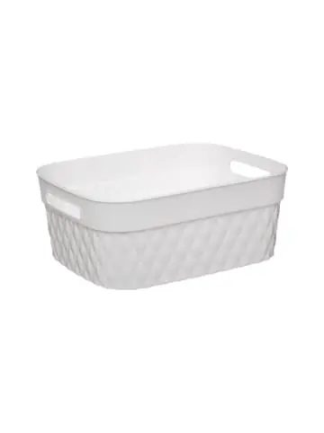Rechteckiger Behälter, Kunststoff, 5 Liter, marine Farbe Organisation von Raum und Objekten im Haus muss nicht schwierig sein! Mit Behältern, Körben und Aufbewahrungsboxen in unserem Shop können Sie ganz einfach Ordnung und Ordnung zu Ihren Sachen bringen. Durchsuchen Sie das gesamte Sortiment an Lagerbehältern, die in unserem Shop erhältlich sind. Recta rechteckiger Behälter ist ein praktisches Produkt der beliebten Marke 5five Simple smart. Maße des Behälters: 28 x 22 x 11 cm sind sehr vielseitig. Modische Marinefarbe sieht modern aus und passt Farbe zu jedem Interieur. Der Artikel sieht ordentlich und stilvoll aus, so dass Sie ihn nicht in den Möbeln verstecken müssen. Es kann auch oben sein – es ist ein Ornament selbst. Dies ist eine großartige Lösung für das Badezimmer – Sie können Kosmetika, Reinigungsmittel, Handtücher, Hygieneprodukte, Haartrockner oder Rasierer in die Körbe legen. Darüber hinaus eignet sich der Behälter für Küchenschränke, als Hilfe bei der Organisation von Utensilien oder Gewürzen. Es gibt viele Möglichkeiten! Praktische Seitengriffe erleichtern den Transport des Behälters. Das Material, aus dem der Behälter hergestellt wurde, ist Kunststoff in einem Geflechtmuster geformt, der an einen Korb erinnert. Kunststoff ist ein extrem haltbares und langlebiges Material, und es ist leicht zu reinigen und zu waschen. Produkteigenschaften: Recta rechteckiger Behälter,Container Abmessungen: 28 x 22 x 11 cm,modische Marinefarbe passt zu jedem Interieur, praktische Seitengriffe machen es einfach zutragen,aus hochwertigem Kunststoff,beliebte Marke 5five Simple Smart.