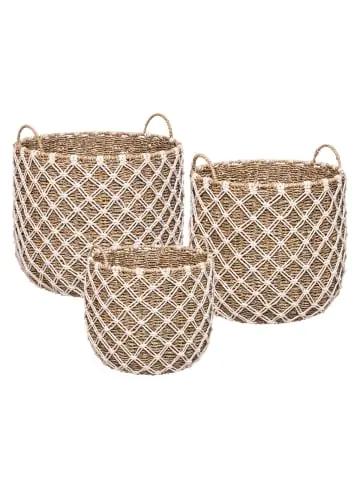 Stilvolle Körbe zur Aufbewahrung von Spielzeug oder Schmuck — unverzichtbar für um den Raum aufzuräumen oder als Bambusgehäuse für TöpfeSet aus drei Körben: Das Set besteht aus drei Körben verschiedene Größen. Körbe können ineinander gesteckt werden — so belegen sie viel weniger Platz, wenn sie ungenutzt sind.Bambuskörbe: Bambus ist ein Material, das viele fasst Vorteile. Es ist nicht nur natürlich und biologisch abbaubar, sondern auch langlebig und schön präsentiert sich. Das Bambusgeflecht ist strapazierfähig.Praktische Griffe: Um das Tragen von Körben zu erleichtern, gibt es Sie sind mit kleinen, aber praktischen Griffen ausgestattet. Nachdem die Reinigung abgeschlossen ist Spielzeugkörbe können problemlos in das Kinderzimmer gebracht werden.Stilvolle Aufbewahrung: Spielzeugbehälter, Boxen für Die Aufbewahrung von Kleinigkeiten muss nicht plastisch und bunt sein! Bambus Körbe in natürlichen Farben sehen modisch und ordentlich aus.Multifunktional: Körbe eignen sich nicht nur für Aufbewahrung von Kleinigkeiten oder Spielzeug. Aufgrund unterschiedlicher Größen, Körbe Sie können es problemlos als Topfdeckel für Ihre Zimmerpflanzen verwenden. Setzen Sie bei Ihnen zu Hause auf Materialien natürlichen Ursprungs. Präsentierte Körbe sind aus Bambus gefertigt und die Außendekoration besteht aus Baumwollschnur. it Durch die Kombination von Materialien und Farben passen die Körbe perfekt in modischer Boho-Chic oder rustikaler Stil. Dieses Produkt darf sicher und in der vom Hersteller vorgesehenen Weise verwendet werden und ausschließlich gemäß den Anweisungen, Empfehlungen, Warnungen oder Sicherheitsinformationen, die auf dem Produkt oder seiner Verpackung angebracht oder beigefügt sind.