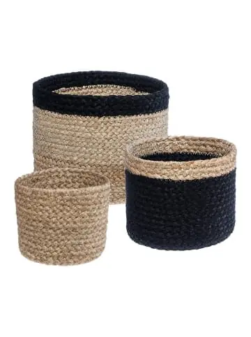 Aufbewahrungskörbe aus Jute, rund, 3 Stück, natürliche Farbe + schwarz von der angesehenen französischen Marke Atmosphera ist nicht nur ein äußerst funktionelles Heimgerät, sondern auch ein sensationelles dekoratives Element für fast jedes Interieur. Die Körbe wurden komplett aus natürlichen, umweltfreundlichen Rohstoffen gewebt und passen perfekt in den modischen Öko-Trend dieser Saison. Sie haben warme natürliche Farben, dank denen sie einen einzigartigen Charakter erhalten.Atmosphera Körbe sind ideal für Wohnzimmer, Schlafzimmer, Badezimmer oder Kinderzimmer. Sie werden leicht eine ganze Reihe aller Arten von Schmuckstücken und Alltagsgegenständen unterbringen. Sie werden perfekt für Kosmetika, Make-up-Accessoires, Spielzeug oder Schmuck sein. Wo auch immer Sie nicht setzen, wird es sich sicherlich als äußerst nützlich erweisen!Ein natürlicher, sorgfältig gefertigter Korb ist auch das ideale Element für dekorativen Schmuck der Terrasse, des Balkons oder der Veranda. Sie können nicht nur Gadgets für die Pflege von Pflanzen, sondern auch die Pflanzen selbst hineinlegen. Der Korb eignet sich hervorragend als fantastische Blumentopf-Abdeckung, sowohl diejenigen mit lebenden Blumen als auch solche mit künstlichen Pflanzen.Produkteigenschaften:Dekorativer Korb aus Jute,sorgfältig aus natürlichen Materialien,Set aus drei runden Körben,sensationell für Spielzeug, Kosmetik, Schmuck oder andere Schmuckstücke, perfekt für Wohnzimmer,Schlafzimmer, Küche, perfekt für Wohnzimmer,Schlafzimmer, Küche, perfekt für Terrasse oder Veranda,kann als Abdeckung für Blumen dienen, ein Produkt derrenommierten Marke Atmosphera. Dieses Produkt darf sicher und in der vom Hersteller vorgesehenen Weise verwendet werden und ausschließlich gemäß den Anweisungen, Empfehlungen, Warnungen oder Sicherheitsinformationen, die auf dem Produkt oder seiner Verpackung angebracht oder beigefügt sind.