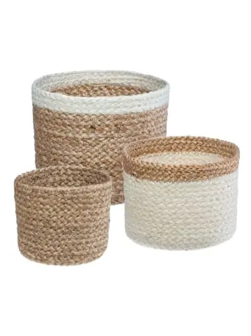 Aufbewahrungskörbe aus Jute, rund, 3 Stück, natürliche Farbe + schwarz von der angesehenen französischen Marke Atmosphera ist nicht nur ein äußerst funktionelles Heimgerät, sondern auch ein sensationelles dekoratives Element für fast jedes Interieur. Die Körbe wurden komplett aus natürlichen, umweltfreundlichen Rohstoffen gewebt und passen perfekt in den modischen Öko-Trend dieser Saison. Sie haben warme natürliche Farben, dank denen sie einen einzigartigen Charakter erhalten.Atmosphera Körbe sind ideal für Wohnzimmer, Schlafzimmer, Badezimmer oder Kinderzimmer. Sie werden leicht eine ganze Reihe aller Arten von Schmuckstücken und Alltagsgegenständen unterbringen. Sie werden perfekt für Kosmetika, Make-up-Accessoires, Spielzeug oder Schmuck sein. Wo auch immer Sie nicht setzen, wird es sich sicherlich als äußerst nützlich erweisen!Ein natürlicher, sorgfältig gefertigter Korb ist auch das ideale Element für dekorativen Schmuck der Terrasse, des Balkons oder der Veranda. Sie können nicht nur Gadgets für die Pflege von Pflanzen, sondern auch die Pflanzen selbst hineinlegen. Der Korb eignet sich hervorragend als fantastische Blumentopf-Abdeckung, sowohl diejenigen mit lebenden Blumen als auch solche mit künstlichen Pflanzen.Produkteigenschaften:Dekorativer Korb aus Jute,sorgfältig aus natürlichen Materialien,Set aus drei runden Körben,sensationell für Spielzeug, Kosmetik, Schmuck oder andere Schmuckstücke, perfekt für Wohnzimmer,Schlafzimmer, Küche, perfekt für Wohnzimmer,Schlafzimmer, Küche, perfekt für Terrasse oder Veranda,kann als Abdeckung für Blumen dienen, ein Produkt derrenommierten Marke Atmosphera. Dieses Produkt darf sicher und in der vom Hersteller vorgesehenen Weise verwendet werden und ausschließlich gemäß den Anweisungen, Empfehlungen, Warnungen oder Sicherheitsinformationen, die auf dem Produkt oder seiner Verpackung angebracht oder beigefügt sind.