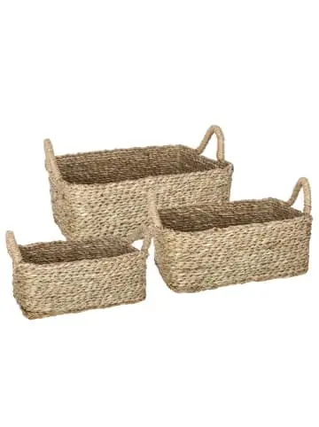 Set von drei rechteckigen dekorativen Körben mit Griffen, aus Weidengeflecht der renommierten Marke Atmosphera ist eine zuverlässige Lösung für diejenigen, die praktische und originelle dekorative Elemente loben. Es ist extrem funktional und praktisch – darin können Sie verschiedene Dinge und Kleinigkeiten aus dem ganzen Haus verstecken. Das Design aus nur umweltfreundlichen Materialien ermöglicht es, Gemüse oder Früchte darin zu lagern. Tolle Aufbewahrungslösung für Kinderspielzeug oder Badezimmerartikel. Modernes Design verleiht Ihrem Apartment Charme. Es spielt keine Rolle, ob Sie einen Satz von drei rechteckigen dekorativen Körben mit Griffen aus Weide in einem hellen oder dunklen Raum platzieren möchten – es wird sicherlich ein anmutiges dekoratives Element sein. Set von drei rechteckigen Körben mit Griffen aus Weidengeflecht sind die perfekte Wahl für diejenigen, die warme und dennoch moderne Einrichtung mögen. Das Ganze besteht aus den hochwertigsten Materialien, so dass Sie auch schwere Dinge in Ihren Korb passen können. Die natürliche Zusammensetzung sorgt dafür, dass die Körbe absolut sicher für Ihre Kinder sind. Es ist auch eine zeitlose und universelle Geschenkidee für jeden Anlass. Produkteigenschaften:Körbe sind aus den hochwertigsten, natürlichen Materialien hergestellt, die Sicherheit und Benutzerfreundlichkeit gewährleistet,Möglichkeit der Platzierung in jedem Raum,modische Farbe,kommt aus der neuen Kollektion der Marke Atmosphera,Chance, schwerere Dinge zu speichernaus Weiden,B: 28 x 16 x H 11 cm, M: 32 x 22 x H. 12 cm, L: 36 x H. 13 cm Dasmodischste in dieser Saison Styling sorgt dafür, dass dieses Produkt nicht schnell aus der Mode kommt. Dieses Produkt darf sicher und in der vom Hersteller vorgesehenen Weise verwendet werden und ausschließlich gemäß den Anweisungen, Empfehlungen, Warnungen oder Sicherheitsinformationen, die auf dem Produkt oder seiner Verpackung angebracht oder beigefügt sind.