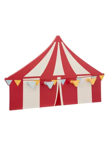 Garderobe für das Kinderzimmer in Form eines Zirkuszelt mit Haken – farbenfrohes Design, das Freude in das Kinderzimmer bringtFröhliches Design: Die Garderobe für das Kinderzimmer in Form eines Zirkuszelt ist eine hervorragende Möglichkeit, eine fröhliche Atmosphäre in das Kinderzimmer zu bringen. Ihr farbenfrohes Aussehen wird mit Sicherheit die Aufmerksamkeit des Kindes auf sich ziehen und jedem Raum Charme verleihen. Praktische Lösung: Mit vier stabilen Haken bietet diese Garderobe ausreichend Platz zum Aufhängen von Kleidung, Rucksäcken oder Spielzeug. Dadurch lernen Kinder, Ordnung in ihrer Umgebung zu halten, was für ihre Entwicklung äußerst wichtig ist. Hohe Materialqualität: Die Garderobe besteht aus MDF, ist langlebig und widerstandsfähig gegen den täglichen Gebrauch. Dieses Material ist auch leicht zu reinigen, was die Ordnung im Kinderzimmer erleichtert. Sicher für Kinder: Das Produkt trägt das FSC-Zertifikat, was bedeutet, dass das Holz aus verantwortungsvollen Quellen stammt. Dadurch können Eltern sicher sein, dass sie ein sicheres und umweltfreundliches Produkt für ihr Kind wählen. Einfache Montage: Die Garderobe ist mit zwei Befestigungen ausgestattet, was die Installation schnell und einfach macht. Dadurch kann sie leicht an jedem Ort im Kinderzimmer montiert werden, angepasst an die individuellen Bedürfnisse. Schrauben sind nicht im Paket enthalten, daher hängt die maximale Belastung der Garderobe von der Art der verwendeten Schrauben und der Art der Wand ab.