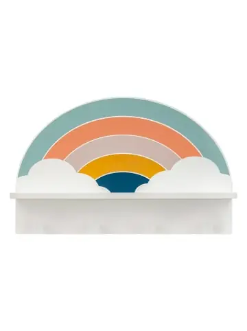 Kinderkleiderhaken Rainbow mit Ablage und Haken – farbenfrohes Design und Funktionalität in einemFarbenfrohes Design: Der Kinderkleiderhaken RAINBOW mit Ablage zieht mit seinem bunten Regenbogenmuster die Blicke auf sich und bringt Freude und Farbe in jedes Zimmer. Funktionalität: Das Produkt ist mit fünf runden Haken ausgestattet, die eine bequeme Aufbewahrung von Kleidung, Rucksäcken oder anderen Kinderaccessoires ermöglichen. Hochwertige Materialien: Hergestellt aus MDF E1 (97%) und Kiefernholz (3%), was für Haltbarkeit und Stabilität der Konstruktion sorgt. Kompakte Maße: Der Haken hat die Maße 30 x 12 x 48 cm, was ihn ideal für kleinere Räume macht, ohne viel Platz einzunehmen. Einfache Montage: Das Produkt ist für die Wandmontage vorgesehen, was eine schnelle und einfache Anbringung an jedem Ort im Kinderzimmer ermöglicht. Dieses Produkt darf sicher und in der vom Hersteller vorgesehenen Weise verwendet werden und ausschließlich gemäß den Anweisungen, Empfehlungen, Warnungen oder Sicherheitsinformationen, die auf dem Produkt oder seiner Verpackung angebracht oder beigefügt sind.