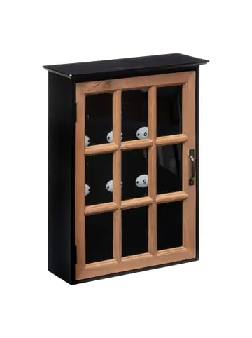 Schlüsselbox MILANA mit 9 Haken und ästhetischem Design – praktische Lösung zur Ordnung Ihrer Schlüssel in Ihrem ZuhausePraktische Lösung: Die Schlüsselbox MILANA ist die ideale Möglichkeit, um Ihre Schlüssel in Ihrem Zuhause zu ordnen. Mit den Abmessungen 30 x 10 x 39,5 cm passt sie in jeden Flur und sorgt für einen einfachen Zugang zu den Schlüsseln im Alltag. Robuste Konstruktion: Hergestellt aus hochwertigem MDF, ist die Box langlebig und widerstandsfähig gegen Beschädigungen. Ihre solide Bauweise garantiert eine langfristige Nutzung, was sie zu einem zuverlässigen Element der Inneneinrichtung macht. Funktionale Aufbewahrung: Die Box ist mit 9 Haken ausgestattet, die all Ihre Schlüssel aufnehmen können. Jeder Haken hat eine maximale Belastung von 50 g, was eine sichere Aufbewahrung selbst größerer Schlüssel ermöglicht. Ästhetisches Design: Die schwarze Oberfläche mit Holzakzenten sorgt dafür, dass die Schlüsselbox MILANA in verschiedene Inneneinrichtungen integriert werden kann. Das transparente Glas ermöglicht eine schnelle Identifizierung der Schlüssel, was den Nutzungskomfort erhöht. Einfache Installation: Die Box ist für die Wandmontage geeignet, was Platz spart und Ordnung hält. Dank des einfachen Montagesystems können Sie sie in wenigen Minuten selbst installieren.