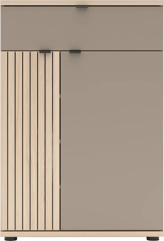 Modernes Design mit Front in Basalt supermatt MDF und Absetzung in Riva Eiche Leistenoptik – stilvolle Kombination aus dunkler Eleganz und Holzoptik.. Großzügiger Stauraum mit 2 Türen, 3 Einlegeböden und 1 Schublade – perfekte Aufbewahrung für Schuhe, Accessoires und Alltagsgegenstände.. DIE PERFEKTE ERGÄNZUNG – Der Schrank ist die optimale Ergänzung zur Möbelserie PISA, lässt sich aber auch problemlos mit bereits bestehendem Mobiliar.. LEICHTE MONTAGE – Der Schuhschrank ist dank der detaillierten Anleitung schnell & leicht montiert und somit für Anfänger geeignet. Das Montage-Material ist inklusive. Möbel sind unsere Leidenschaft. Wir stehen für beste Qualität und aus diesem Grund arbeiten wir nur mit ausgewählten und namhaften Lieferanten zusammen.