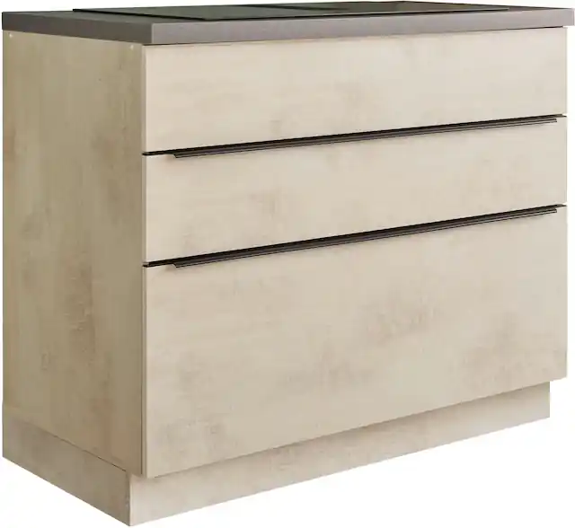 Kochfeldschrank mit 2 geräumigen Schubladen, bietet viel Stauraum für Töpfe, Pfannen etc.. Schrank melaminbeschichtet in modernen Chromix Weiß. Schubkasteninnenmaße obere Schublade BxHxT 102,8 x 6,2 x 43,3cm, untere Schublade BxHxT 102,8 X 19,2 x 43,3 cm. einfache Selbstmontage mit Aufbauanleitung, FSC-Mix. Schubladen mit Softclose, Schrank im modernen Chromix Weiß melaminbeschichtet