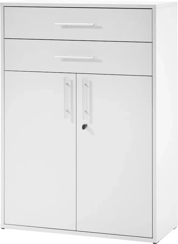 Moderner Büroschrank und oder Mehrzweckschrank bietet viel Stauraum. Dieser multifunktionale Schrank ist aus starkem langlebigem Holzwerkstoff melaminbeschichtet und garantiert Qualität. Mit dem Metallschloss können Sie Dokumente und Briefe sicher aufbewahren. Zeitloser Aktenschrank dient Ihnen entweder als Aktenschrank im Büro oder als Aufbewahrungsschrank in der Garage. Schrank bietet Ihnen Platz für Bücher, Akten oder andere nützliche Dinge