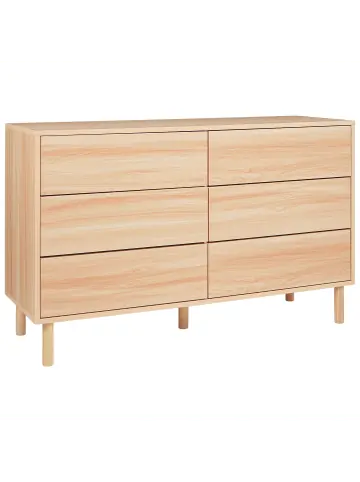 Sideboard mit geräumigen Schubladen. Vervollständigen Sie Ihren Wohnbereich mit dieser geräumigen Kommode – einer perfekten Mischung aus Funktionalität und Stil. Aus robusten Materialien gefertigt und mit stabilen Holzbeinen versehen, garantiert dieses Möbelstück sowohl Langlebigkeit als auch Eleganz. Mit ihren geräumigen Schubladen bietet sie reichlich Stauraum für Kleidung, Dokumente oder Bettwäsche. Auf der Oberseite können Sie Pflanzen, Vasen oder andere Dekoartikel ausstellen, um Ihr Zuhause mit Flair zu gestalten.Details: Typ: Kommode Farbe: Braun Material: Faserplatte Zusätzliches Material: Gummibaumholz Material Rand: Holzwerkstoff Gestellmaterial: Holz Tischplattenmaterial: Holzwerkstoff Schubladen: Ja Finish: Melamin Schutzkappen / Filzgleiter: Nein Schubladen: 6 Regalböden: NeinDimensions: Tiefe: 40 cm Breite: 120 cm Höhe: 74 cm Gewicht: 44 kg Max. Belastung der Schublade: 15 kg Max. Belastung der Oberplatte: 90 kgSie kaufen: 1 x KommodeProduktvorteile: Praktische und geräumige Schubladen, Wunderbar geeignet für Schlaf- und Wohnbereich, Passt wunderbar zu jedem Einrichtungsstil, Qualitativ hochwertiges Material, Stabile und solide KonstruktionMontage: Nicht montiert. 60-90 Min.Zusatzinformationen: Um die Haltbarkeit und die Ästhetik der Arbeitsplatte zu erhalten, sollte man Platzsets und Untersetzer verwenden und feuchte Stellen schnellstmöglich trocken wischen, um Produktschäden zu vermeiden.Pflegeanleitung:Faserplatte: 1.Bitte ausschließlich milde Reinigungsmittel und weiche Tücher verwenden. Feuchte Stellen sofort trocken reiben.Kiefernholz: 1.Bitte ausschließlich milde Reinigungsmittel und weiche Tüchern verwenden. Dabei immer in Richtung der Maserung abwischen 2.Sofort nach der Reinigung abtrocknen, um zu verhindern, dass sich Wasser auf dem Produkt absetzt 3.Nur bei geölten Holzartikeln befolgen: Sie sollten nach einiger Zeit nachgeölt werden, damit sie lange in einem guten Zustand erhalten bleiben.