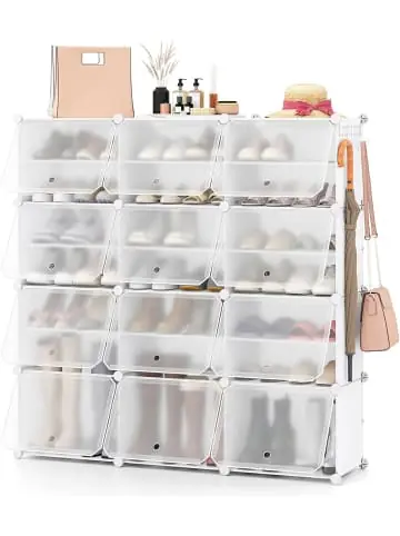 Beschreibung: Bringen Sie Ihre Schuhe und andere Gegenstände mit diesem Würfel-Schuhregal in Ordnung. Dieses 8-stöckige Schuhregal kommt mit einem abnehmbaren, unterteilten Panel, das verschiedene Schuhe perfekt aufbewahrt. Das DIY-Design ermöglicht es Ihnen, individuell angepasste Würfelfächer zu erstellen, um unterschiedliche Bedürfnisse zu erfüllen. Sie können es als Schuhregal oder als anderen Aufbewahrungsschrank verwenden und an verschiedenen Orten aufstellen. Hergestellt aus hochwertigem PP und Metall ist dieses Schuhregal stabil und langlebig.Eigenschaften: Großer Stauraum für bis zu 48 Paar Schuhe Abnehmbares, unterteiltes Panel für unterschiedliche Bedürfnisse Freie Kombination für verschiedene Formen und Anforderungen Hochwertige Materialien für Stabilität und Langlebigkeit Das Türlochdesign für eine gute Belüftung und erleichtert das Öffnen Geeignet für Eingangsbereich, Schlafzimmer und mehr Die transparente Tür erleichtert das Auffinden der Schuhe Material: PP, Metall Gesamtgröße: 124 x 32 x 125 cm (L x B x H) Tragfähigkeit jedes Fachs: 4 kg Tragfähigkeit jedes Regals: 2 kg Nettogewicht: 11,5 kgLieferungsumfang: 1 x Schuhregal 1 x Hammer 1 x Anleitung