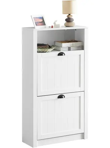 Mit diesem Schuhkipper sagen Sie dem Schuhchaos in Ihrem Flur den Kampf an! Der geschlossene Schuhschrank schützt Ihre Sandalen, High Heels und Turnschuhe gegen Staub, Ausbleichen und sorgtfür einen ordentlichen Flur. Zur kühlen Eleganz des modernen Wohnstils passt ein geradliniger Schuhkipper in eleganter Farbe. Die Metallgriffe betonen das cleane Design und machen den Schrank einfach und stilvoll.Gewicht: ca.18,4kg; Belastbarkeit: bis 50kg; Material: MDF(E1).