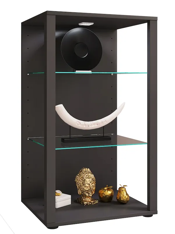 Highlights:- Zwei Einlagenböden aus Glas- Fachböden individuell verstellbar- Offene Vitrine- Vitrine ohne Glasfronten – Beleuchtung optional erhältlich- Maße H. 90 x B. 52 x T. 44 cmBei der offenen Sammelvitrine „Glasol XL“ hat der Designer Funktion und Optik wunderschön miteinander vereint. Zwei schmale Traversen sorgen für eine besondere Optik der Sammelvitrine. Die Fachböden aus Glas sind verstellbar und passen sich somit zu jederzeit den persönlichen Bedürfnissen an. Die Vitrine kann mit der LED-Beleuchtung „VCM Leuchto“ ergänzt werden.VCM hat sich seit den 70er-Jahren auf die Konstruktion, Produktion und Vertrieb von Möbeln mit einem fairen Preis/Leistungsverhältnis spezialisiert und damit bereits Millionen Haushalte verschönert.