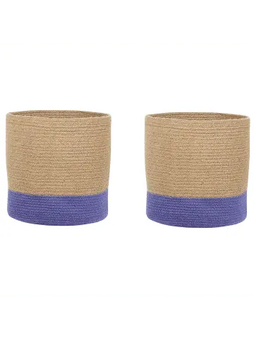 Moderne Aufbewahrungskörbe im Boho-Stil in Beige-Violett. Suchen Sie nach einer neuen Möglichkeit, Ihr Zuhause in Ordnung zu halten? Diese beiden Körbe sind ideal, um zusätzliches Bettzeug, Wäsche, Spielzeug oder Bücher zu verstauen. Sie sind aus Jute und Baumwolle handgefertigt und haben ein schönes geflochtenes Muster in Beige und Violett. Sie können die Stoffkörbe vor Ihr Bett, neben dem Sofa oder auf einem Regal platzieren.Details: Typ: Bad-Kleinaufbewahrung Farbe: Beige Material: Jute Zusätzliches Material: Baumwolle Zusammenstellung: 75% Jute Form: Rund Handgefertigt: JaDimensions: Tiefe: 34/37 cm Breite: 34/37 cm Höhe: 30/33 cm Gesamtmasse: 37x37x33 Gewicht: 2 kgSie kaufen: 2 x KorbProduktvorteile: Handgefertigtes Flechtwerk betont den einzigartigen Charakter, Gut kombinierbar mit vielen Einrichtungsstilen, Dekorativ und zugleich funktional, Nur für Innenräume geeignet, Nimmt verschiedene Aufbewahrungsbedürfnisse aufMontage: Benötigt keine MontageZusatzinformationen: Der Artikel wird erst nach einiger Zeit seine gewünschte Form annehmen. Daher empfiehlt es sich, ihn so bald wie möglich auszupacken und mindestens 48 Stunden zu warten. Um eine bessere Wirkung zu erzielen, sollte er mit größeren Gegenständen ausgefüllt werden. Bitte beachten Sie, dass jedes Produkt handgefertigt ist. Abweichungen in Struktur, Farbe oder Form können aufgrund der Eigenschaften der verwendeten Materialien auftreten und stellen keinen Qualitätsmangel dar.Pflegeanleitung: 1.Nur punktuell reinigen 2.Nicht im Wäschetrockner trocknen. Nicht bügeln.