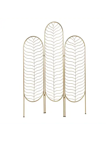 Handgefertigte, faltbare Metall-Stellwand mit Lochmuster. Dieser Paravent ermöglicht es Ihnen, unterschiedliche Bereiche voneinander zu trennen und verhindert dabei, dass es in dem Raum zu dunkel wird. Dank der goldenen Farbe und des handgefertigten Designs ist er in jeder modernen Einrichtung ein glamouröser Hingucker. Zudem verfügt der Raumteiler über 3 Paneele, die sich zusammenfalten lassen, sodass Sie ihn bequem verstellen und bei Nichtgebrauch unterbringen können. Der Raumtrenner besitzt zusätzliche Schutzkappen, so steht gelegentlichem Verschieben nichts im Wege.Details: Typ: Kleiderständer Farbe: Gold Material: Eisen Finish: Gefärbt Handgefertigt: JaDimensions: Tiefe: 1 cm Breite: 120 cm Höhe: 160 cm Gewicht: 7 kgSie kaufen: 1x ParaventProduktvorteile: Dekorativ und zugleich funktional, Modernes Design, Handgefertigte Präzision, Stabile Konstruktion des Gestells, Platzsparend zusammenklappbarMontage: Benötigt keine MontagePflegeanleitung:Eisen: 1.Bitte ausschließlich handelsübliche, milde Reinigungsmittel und weiche Tücher verwenden, wobei feuchte Stellen sofort trocken gerieben werden sollten 2.Vermeiden Sie scheuernde Reiniger, da diese die Oberfläche beschädigen können 3.Bei Chrom und Kupfer regelmäßig mit speziellen Pflegemitteln polieren.