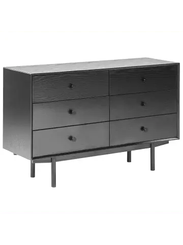 Moderne Kommode mit 6 Schubladen. Diese moderne Kommode überzeugt durch ein schlichtes, stilvolles Design, das in jeden Raum passt. Mit ihren sechs tiefen Schubladen bietet sie reichlich Stauraum für viele Gegenstände – von Kleidung bis hin zu Geschirr. Die schlanken Metallbeine verleihen dem Möbelstück eine elegante Note und machen es zu einer vielseitigen Ergänzung für Schlafzimmer oder Wohnzimmer.Details: Typ: Kommode Stil: Modern Farbe: Schwarz Material: Faserplatte Zusätzliches Material: Eisen Gestellmaterial: Metall Schubladen: Ja Finish: Melamin Abschliessbar: Nein Schubladen: 6 Regalböden: NeinDimensions: Tiefe: 40 cm Breite: 120 cm Höhe: 75 cm Gewicht: 41 kg Max. Belastung der Schublade: 5 kg Max. Belastung der Oberplatte: 30 kgSie kaufen: 1 x KommodeProduktvorteile: Verleiht jedem Raum eine einzigartige Note, Wunderbar geeignet für Schlaf- und Wohnbereich, Robustes Gestell, Besonders pflegeleicht, Nimmt verschiedene Aufbewahrungsbedürfnisse aufMontage: Nicht montiert. 45 – 60 Min.Zusatzinformationen: Bitte beachten: Aus Sicherheitsgründen muss das Produkt an der Wand montiert werden.Pflegeanleitung:MDF-Platte: 1.Bitte ausschließlich milde Reinigungsmittel und weiche Tücher verwenden. Feuchte Stellen sofort trocken reiben.Eisen: 1.Bitte ausschließlich handelsübliche, milde Reinigungsmittel und weiche Tücher verwenden, wobei feuchte Stellen sofort trocken gerieben werden sollten 2.Vermeiden Sie scheuernde Reiniger, da diese die Oberfläche beschädigen können 3.Bei Chrom und Kupfer regelmäßig mit speziellen Pflegemitteln polieren.