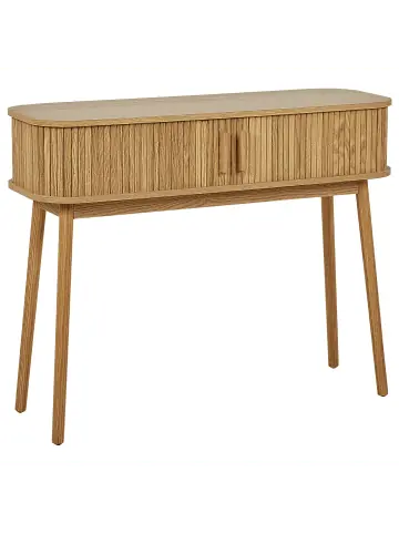 Konsole mit Schiebetüren. Ergänzen Sie Ihr Wohnzimmer mit diesem eleganten Konsolentisch, der traditionelles Design mit einem modernen Touch verbindet. Gefertigt aus robustem MDF, verfügt er über zwei leicht gleitende Schiebetüren, die praktischen Stauraum für Ihre wichtigsten Utensilien bieten. Getragen von stabilen Kiefernholzbeinen, verleiht dieses Möbelstück Ihrem Raum zeitlosen Charme und passt sich verschiedenen Einrichtungsstilen an. Die pflegeleichte Oberfläche macht die Reinigung zum Kinderspiel – eine perfekte Kombination aus Funktionalität und Stil.Details: Typ: Konsolentisch Farbe: Braun Material: MDF-Platte Zusätzliches Material: Faserplatte Material Rand: Holzwerkstoff Gestellmaterial: Holz Tischplattenmaterial: Holzwerkstoff Türöffnungsarten: Schiebetür Schubladen: Nein Finish: Laminiert Schutzkappen / Filzgleiter: Ja Türanzahl: 2 Regalböden: NeinDimensions: Tiefe: 35 cm Breite: 100 cm Höhe: 80 cm Gewicht: 12 kg Max. Belastung der Oberplatte: 10 kgSie kaufen: 1x KonsolentischProduktvorteile: Stilvolle Schiebetüren, Wunderbar geeignet für Schlaf- und Wohnbereich, Modernes Design, Solide Verarbeitung, Schutzkappen zum Schutz des BodensMontage: Nicht montiert. 20 – 40 Min.Zusatzinformationen: Um die Haltbarkeit und die Ästhetik der Arbeitsplatte zu erhalten, sollte man Platzsets und Untersetzer verwenden und feuchte Stellen schnellstmöglich trocken wischen, um Produktschäden zu vermeiden.Pflegeanleitung:MDF-Platte: 1.Bitte ausschließlich milde Reinigungsmittel und weiche Tücher verwenden. Feuchte Stellen sofort trocken reiben.Kiefernholz: 1.Bitte ausschließlich milde Reinigungsmittel und weiche Tüchern verwenden. Dabei immer in Richtung der Maserung abwischen 2.Sofort nach der Reinigung abtrocknen, um zu verhindern, dass sich Wasser auf dem Produkt absetzt 3.Nur bei geölten Holzartikeln befolgen: Sie sollten nach einiger Zeit nachgeölt werden, damit sie lange in einem guten Zustand erhalten bleiben.