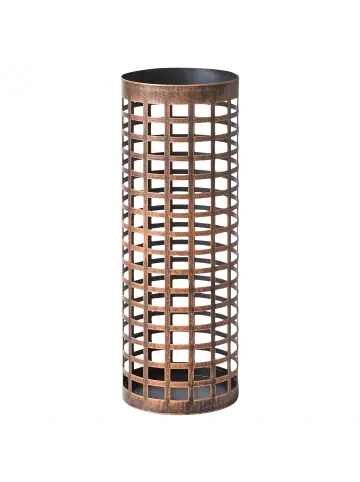 Regenschirmständer aus Metall für den Flur. Dieser zylindrische Schirmständer verfügt über eine lackierte Oberfläche im Used-Look. Er verleiht jedem Eingangsbereich einen Hauch von industriellem Charme. Dank seines offenen Gitterdesigns werden nasse Regenschirme praktisch getrocknet und der Ständer ist gleichzeitig ein optischer Hingucker. Dank seiner robusten Metallkonstruktion ist er äußerst langlebig und stabil und eignet sich somit für die Aufbewahrung mehrerer Regenschirme.Details: Typ: Schirmständer Farbe: Kupfer Material: Eisen Finish: PulverbeschichtetDimensions: Tiefe: 21 cm Breite: 21 cm Höhe: 58 cm Gewicht: 1 kgSie kaufen: 1 x SchirmständerProduktvorteile: Ein einzigartiger Hingucker, Handgefertigte Präzision, Stabile und solide Konstruktion, Pflegeleichtes und strapazierfähiges MaterialMontage: Benötigt keine MontageZusatzinformationen: Der sichtbare Alterungseffekt, sowie jede Art von Verfärbung oder Abnutzung sind absichtlich und stellen keinen Qualitätsmangel des Produkts dar. Bitte beachten Sie, dass jedes Produkt handgefertigt ist. Abweichungen in Struktur, Farbe oder Form können aufgrund der Eigenschaften der verwendeten Materialien auftreten und stellen keinen Qualitätsmangel dar.Pflegeanleitung:Eisen: 1.Bitte ausschließlich handelsübliche, milde Reinigungsmittel und weiche Tücher verwenden, wobei feuchte Stellen sofort trocken gerieben werden sollten 2.Vermeiden Sie scheuernde Reiniger, da diese die Oberfläche beschädigen können 3.Bei Chrom und Kupfer regelmäßig mit speziellen Pflegemitteln polieren.