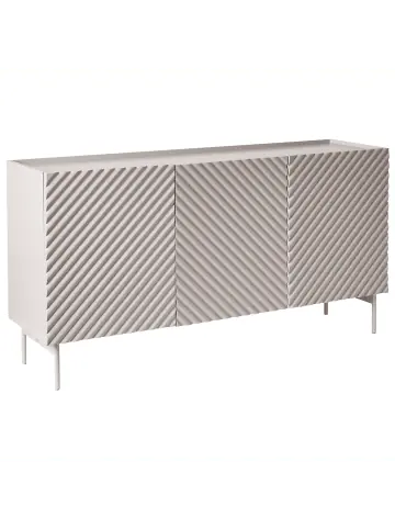 Sideboard mit dekorativen Türen in Cashmere. Dieses Sideboard in Cashmere-Farbe verleiht jedem modernen Wohn- oder Schlafzimmer eine sanfte, moderne Note. Hinter den drei Türen mit einzigartig gemusterten Fronten verbergen sich geräumige Regalfächer, die für stilvolle Ordnung sorgen. Die robuste Melamin-Oberfläche und die schlanken Metallbeine garantieren, dass das Möbelstück über Jahre hinweg schön und elegant bleibt.Details: Typ: Sideboard Stil: Modern Farbe: Beige Farbton: Hellbeige Material: MDF-Platte Zusätzliches Material: Eisen Gestellmaterial: Metall Tischplattenmaterial: Holzwerkstoff Türöffnungsarten: Standard Schubladen: Nein Finish: Melamin Schutzkappen / Filzgleiter: Ja Türanzahl: 3 Regalböden: JaDimensions: Tiefe: 40 cm Breite: 150 cm Höhe: 77 cm Gewicht: 43 kg Max. Belastung pro Fach: 10 kg Max. Belastung der Oberplatte: 50 kgSie kaufen: 1 x SideboardProduktvorteile: Wunderbar geeignet für Schlaf- und Wohnbereich, Passt wunderbar zu jedem Einrichtungsstil, Stabile und solide Konstruktion, Besonders pflegeleicht, Zusätzlicher StauraumMontage: Nicht montiert. 45 – 60 Min.Pflegeanleitung:MDF-Platte: 1.Bitte ausschließlich milde Reinigungsmittel und weiche Tücher verwenden. Feuchte Stellen sofort trocken reiben.Eisen: 1.Bitte ausschließlich handelsübliche, milde Reinigungsmittel und weiche Tücher verwenden, wobei feuchte Stellen sofort trocken gerieben werden sollten 2.Vermeiden Sie scheuernde Reiniger, da diese die Oberfläche beschädigen können 3.Bei Chrom und Kupfer regelmäßig mit speziellen Pflegemitteln polieren.