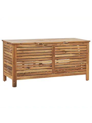 Wundervolle Truhe aus Akazienholz. Die Truhe verzaubert mit ihrer natürlichen Schönheit und Qualität auf höchstem Niveau. Eine praktische Stauraumlösung für Gartenkissen und Auflagen! Akazienholz ist ein sehr langlebiges Hartholz, welches allen Witterungseinflüssen ausgesetzt werden kann. Bitte beachten Sie, dass die Kissenbox nicht wasserdicht ist.Details: Typ: Truhe Farbe: Braun Material: Akazienholz Zusätzliches Material: Stahl Finish: Geölt Volumen: 150Dimensions: Tiefe: 48 cm Breite: 130 cm Höhe: 64 cm Gewicht: 22 kg Max. Belastung: 80 kgSie kaufen: 1 x KissenboxProduktvorteile: Platzsparend und zugleich zusätzliche Stellfläche, Die natürliche Holzmaserung und Knoten machen jedes Stück zu einem Unikat, Pflegeleichtes und strapazierfähiges Material, Damit die Qualität des Artikels erhalten bleibt, sollte er vor Wasser und Regen geschützt werden, Nimmt verschiedene Aufbewahrungsbedürfnisse aufMontage: Nicht montiert. 20 – 40 Min.Zusatzinformationen: Damit das folgende Produkt jahrelang seine Schönheit beibehält, stellen wir Ihnen ein ausführliches Pflegehandbuch zur Verfügung. Die Pflegeanleitung und Tipps zur richtigen Wartung Ihres neuen Produkts finden Sie finden Sie unten im Abschnitt „Verpackung und Montage“. Holz ist ein Naturprodukt. Farb- und Strukturunterschiede, Narben, Falten und sonstige Naturmerkmale sind Echtheitsbeweise und keine zur Reklamation berechtigende Fehler.Pflegeanleitung:Akazienholz: 1.Bitte ausschließlich milde Reinigungsmittel und weiche Tücher verwenden. Dabei immer in Richtung der Maserung abwischen. Feuchte Stellen sofort mit einem weichen Tuch trocken reiben und Dauernässe bei der Reinigung vermeiden 2.Geöltes Holz sollte vor der Benutzung und nach der Saison vor der Einlagerung nachgeölt werden, besonders bei feuchtem Klima 3.Wir empfehlen bei ungünstigen Witterungsbedingungen und für die Wintersaison eine Schutzabdeckung zu verwenden oder, wenn möglich, die Gartenmöbel trocken und kühl drinnen zu lagern.