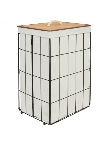 Badezimmer Wäschekorb mit Deckel und Wäschesack. Dieser elegante Wäschekorb verbindet Funktionalität mit minimalistischem Design. Er besteht aus robustem Metall und ist innen mit Stoff gefüttert, der die Wäsche optimal durchlüftet. Der Bambusdeckel verleiht dem Korb einen natürlichen Touch und ist abnehmbar, so dass man leicht darauf zugreifen und ihn reinigen kann. Dieser Korb ist ideal für moderne Badezimmer oder Waschküchen und vereint auf einfache Weise Haltbarkeit und Eleganz.Details: Typ: Wäschekörbe Farbe: Schwarz Material: Eisen Zusätzliches Material: Stoff Zusammenstellung: 73% Polyester Form: Rechteckig Finish: Pulverbeschichtet Handgefertigt: Ja Volumen: 72Dimensions: Tiefe: 30 cm Breite: 40 cm Höhe: 60 cm Gewicht: 2 kgSie kaufen: 1 x KorbProduktvorteile: Erzeugt Wohlfühlcharakter in jedem Raum, Dekorativ und zugleich funktional, Handgefertigte Präzision, Hochwertiges Material, Vielseitige Nutzungsmöglichkeiten, Grosszügiger StauraumMontage: Benötigt keine MontageZusatzinformationen: Bitte beachten Sie, dass jedes Produkt handgefertigt ist. Abweichungen in Struktur, Farbe oder Form können aufgrund der Eigenschaften der verwendeten Materialien auftreten und stellen keinen Qualitätsmangel dar. Holz ist ein Naturprodukt. Farb- und Strukturunterschiede, Narben, Falten und sonstige Naturmerkmale sind Echtheitsbeweise und keine zur Reklamation berechtigende Fehler.Pflegeanleitung:Eisen: 1.Bitte ausschließlich handelsübliche, milde Reinigungsmittel und weiche Tücher verwenden, wobei feuchte Stellen sofort trocken gerieben werden sollten 2.Vermeiden Sie scheuernde Reiniger, da diese die Oberfläche beschädigen können 3.Bei Chrom und Kupfer regelmäßig mit speziellen Pflegemitteln polieren.Stoff: 1.Von Hand oder mit einem Feinwäsche-Programm bei max. 30°C waschen, wenn auf dem Etikett keine weiteren Hinweise des Herstellers gegeben sind 2.Wenn auf dem Etikett nicht anders angegeben, bitte nicht im Trockner trocknen und auch nicht bügeln.