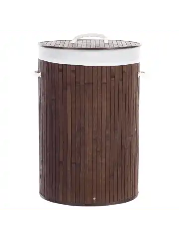 Runder, handgefertigter Wäschekorb mit Deckel und Wäschesack. Dieser stilvolle, handgefertigte Korb bietet Platz für Ihre Wäsche oder andere Gegenstände. Außen aus Bambusholz und innen aus hochwertigem Polyester gefertigt, ist das Stück sehr langlebig und pflegeleicht. Der Korb verfügt über einen abnehmbaren Deckel und Griffe, mit denen Sie ihn leicht bewegen können. Wird der Korb nicht gebraucht, lässt er sich zusammenklappen und verstauen.Details: Typ: Wäschekörbe Farbe: Braun Material: Bambusholz Zusätzliches Material: Stoff Zusammenstellung: 73% Polyester Form: Rund Finish: Farbig Handgefertigt: Ja Volumen: 75Dimensions: Tiefe: 40 cm Breite: 40 cm Höhe: 60 cm Gewicht: 2 kgSie kaufen: 1 x KorbProduktvorteile: Erzeugt Wohlfühlcharakter in jedem Raum, Dekorativ und zugleich funktional, Handgefertigte Präzision, Hochwertiges Material, Vielseitige Nutzungsmöglichkeiten, Grosszügiger StauraumMontage: Teilweise montiert. 5 – 15 Min.Zusatzinformationen: Bitte beachten Sie, dass jedes Produkt handgefertigt ist. Abweichungen in Struktur, Farbe oder Form können aufgrund der Eigenschaften der verwendeten Materialien auftreten und stellen keinen Qualitätsmangel dar. Da bei der Herstellung natürliche Materialien verwendet werden, können kleine Farb-, Form-, bzw. Größendifferenzen auftreten. Diese Unterschiede stellen jedoch keinen Produktfehler dar.Pflegeanleitung:Bambusholz: 1.Bitte ausschließlich milde Reinigungsmittel und weiche Tüchern verwenden. Dabei immer in Richtung der Maserung abwischen 2.Sofort nach der Reinigung abtrocknen, um zu verhindern, dass sich Wasser auf dem Produkt absetzt 3.Nur bei geölten Holzartikeln befolgen: Sie sollten nach einiger Zeit nachgeölt werden, damit sie lange in einem guten Zustand erhalten bleiben.Stoff: 1.Von Hand oder mit einem Feinwäsche-Programm bei max. 30°C waschen, wenn auf dem Etikett keine weiteren Hinweise des Herstellers gegeben sind 2.Wenn auf dem Etikett nicht anders angegeben, bitte nicht im Trockner trocknen und auch nicht bügeln.
