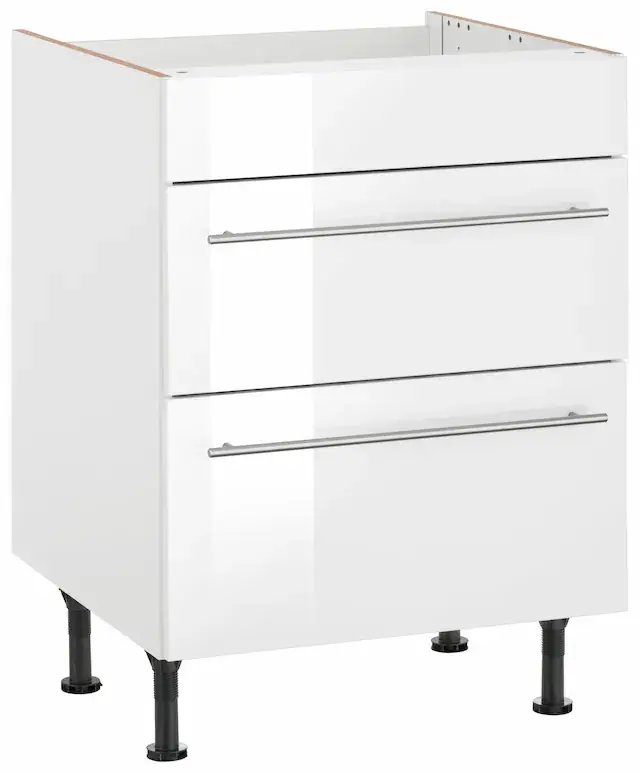 Stangengriffe aus Metall. Maße (B/T/H): 60/58,4/87 cm. Made in Germany. Höhenverstellbare Stellfüße für Bodenausgleich. In mehreren Farben erhältlich