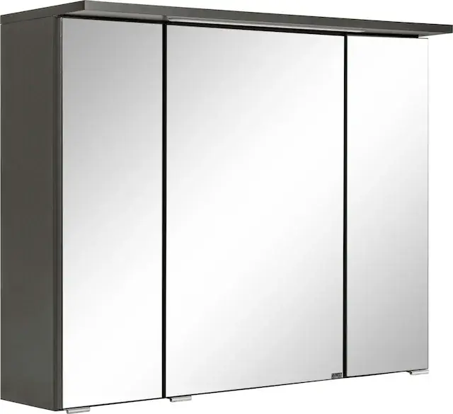 Maße (B/T/H): 80/20/66 cm. Inklusive Beleuchtung. Trendstarke Farben. Rundumspiegelbild, durch besondere Klapptechnik der Spiegeltüren