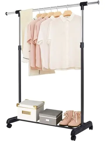 Beschreibung: Der praktische Kleiderständer hilft Ihnen Ordnung zu Halten. Egal ob im Schlafzimmer, Wohnzimmer, Clubraum oder im Büro macht dieser flexible Kleiderständer immer eine gute Figur. Der praktische Kleiderständer kann durch seine leicht laufenden Rollen schnell und einfach an einen passenden Ort platziert werden. Der stufenlos vertikal und horizontal verstellbare Kleiderständer kann variabel zum Aufhängen von Hemden ebenso wie Mänteln eingesetzt werden.Eigenschaften: mit Ablagegestänge, nutzbar für Schuhe Platzsparend und praktisch Für eine große Anzahl an Kleidungsstücken Ausziehbare Stange(92-170cm) Individuell höhenverstellbar (84-140cm) Vier leichtlaufende Rollen, davon zwei mit Feststellbremse Schnelle und einfache Montage Totalmaße (LxBxH): 140 x 42 x 170 cm Ausziehbar: 84-140cm Höhenverstellbar: 92-170cm Gewicht: 2 kg Material: Kunststoff, Rohre aus EdelstahlLieferumfang: 1 x Kleiderständer 1 x Montageanleitung