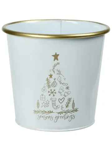 Metalleimer für Weihnachten – praktisch und dekorativ Metalleimer für Weihnachten in Weiß: Dieser Metalleimer ist die perfekte Ergänzung für Ihre Weihnachtsdekoration. Mit seinem eleganten und zeitlosen Design passt er zu jedem Einrichtungsstil.Praktische Größe: Der Eimer hat eine Höhe von 15 cm und einen Durchmesser von 17 cm. Dadurch bietet er ausreichend Platz für kleine Geschenke, Süßigkeiten oder Weihnachtsdekorationen.Hochwertiges Material: Der Eimer besteht aus robustem Metall, das langlebig und stabil ist. Sie können sich darauf verlassen, dass er Ihnen viele Weihnachtsfeste lang Freude bereiten wird.Vielseitig einsetzbar: Der Eimer kann auf vielfältige Weise verwendet werden. Sie können ihn als Geschenkverpackung, als Blumentopf oder zur Aufbewahrung von kleinen Gegenständen nutzen. Sie können ihn ganz nach Ihren Wünschen dekorieren und in Ihre Weihnachtsdekoration integrieren.Dieses Produkt darf sicher und in der vom Hersteller vorgesehenen Weise verwendet werden und ausschließlich gemäß den Anweisungen, Empfehlungen, Warnungen oder Sicherheitsinformationen, die auf dem Produkt oder seiner Verpackung angebracht oder beigefügt sind.