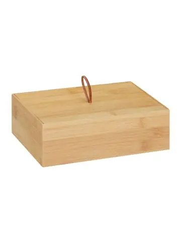 Diese schöne Bambus Aufbewahrungsbox ist perfekt geeignet für Utensilien und Kleinteile, die sich in jedem Haushalt ansammeln. Nutzen sie das Kistchen im Bad für Kosmetikartikel oder stellen Sie es in die Küche, um Küchenhelfer darin aufzubewahren. Gerne können Sie den Bambus Kasten für Deko-Zwecke im Wohnzimmer verwenden. Die Ordnungsbox ist universell einsetzbar. Dank Deckel kann die Allzweckbox auch verschlossen werden, sodass der Inhalt vor Staub und neugierigen Blicken geschützt ist.Aufbewahrungsbox mit Deckel im Detail – Gesamtmaße H x B x T: ca. 7 x 22 x 15 cm – Innenmaße H x B x T: ca. 6 x 20,5 x 13,5 cm – Gewicht: ca. 450 g – Material: Bambus – Farbe: NaturKleine Ordnungsbox aus Bambus – Eignet sich zur Aufbewahrung von verschiedenen Utensilien und Kleinteilen – Bambus Kistchen ist bei Bedarf mit Deckel verschließbar – Staubschutz – Schlichte und funktionale Ordnungsbox passt in jedes Zimmer – Dank kompakter Maße idealer Platzsparer – Aus robustem und feuchtigkeitsresistentem Bambus gefertigtLieferumfang – 1x Bambus Box – Dekorationsartikel sind nicht im Lieferumfang enthalten