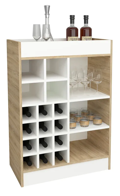 Highlights:- Maße ca. H. 100 x B. 70 x T. 38 cm- Pflegeleichte Oberfläche – 12 Fächer für Flaschen, sowie 7 weitere Fächer für zusätzlich Stauraum- Auf der Kommode eine eingerahmte Abstellfläche – Montagematerial aus robustem MetallDer VCM Küchenschrank mit unzählige Fächern ist besonders zeitgemäß und bietet jede Menge Stauraum für Küchenutensilien und Flaschen. Der Korpus ist 16mm dick und daher besonders stabil.Bei der Entwicklung wurde darauf geachtet, dass das Buffet kleine und große Fächer enthält, sowie auf der Oberseite eine praktische Ablagefläche bietet. Der Küchenschrank kann mit weiteren Küchenmöbeln der Serie „VCM Esilo“ kombiniert werden. Die zahlreichen Schränke unterschiedlicher Art sind harmonisch aufeinander abgestimmt und können modular miteinander kombiniert werden. Somit können Küchenzeilen oder Winkelküchen nach persönlichen Anforderungen und Bedürfnissen gestaltet werden. VCM hat sich seit den 70er-Jahren auf die Konstruktion, Produktion und Vertrieb von Möbeln mit einem fairen Preis/Leistungsverhältnis spezialisiert und damit bereits Millionen Haushalte verschönert.