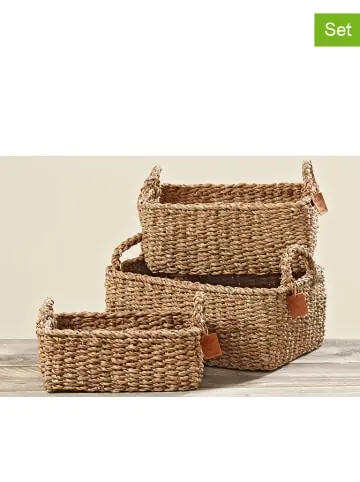 Im Set enthalten: – 3 Körbe in verschiedenen Größen- Material: Seegras – dekorativ und funktional – Tragegriffe erleichtern den Transport – Detail(s): Kunstleder-Anhänger