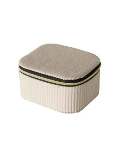 Schmuckbox mit Fächern und Reißverschluss – eine elegante und funktionale Möglichkeit zur Aufbewahrung von SchmuckPraktische Maße: Die Schmuckbox CAJA hat die Maße 12 x 10,2 x 6,1 cm, was sie zur idealen Lösung für die Aufbewahrung von Schmuck in jedem Raum macht. Dank der kompakten Größe passt sie in eine Schublade, auf ein Regal oder einen Schminktisch. Hochwertige Materialien: Hergestellt aus Polyester und MDF, ist die Box nicht nur ästhetisch, sondern auch langlebig. Diese Materialien bieten Widerstandsfähigkeit gegen Kratzer und Beschädigungen, was eine langfristige Nutzung garantiert. Funktionales Design: Die Box ist mit einem praktischen Reißverschluss ausgestattet, der einen einfachen Zugang zum Inhalt ermöglicht. Darüber hinaus helfen die inneren Fächer bei der Organisation des Schmucks, was das Auffinden erleichtert. Elegantes Aussehen: Die beige Farbe und das samtige Finish verleihen der Box einen eleganten und modernen Charakter. Dies ist ein hervorragendes Accessoire für jedes Interieur, das dessen Stil unterstreicht. Vielseitige Anwendung: Die Box CAJA ist ideal zur Aufbewahrung nicht nur von Schmuck, sondern auch von anderen Kleinigkeiten wie Kosmetika oder Make-up-Zubehör. Dadurch wird sie zu einem universellen Element der Inneneinrichtung.