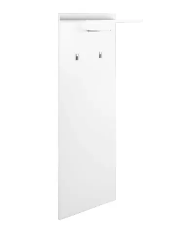 Die Wandgarderobe Jakob überzeugt durch ihr modernes und elegantes Design. Durch die schlanke Form findet die Garderobe in verschiedensten Räumen seinen Platz. Zwei Kleiderhaken, eine Kleiderstange und ein Regalboden bieten Ihnen reichlich PLatz für Ihre Kleidung. Das Paneel ist in verschiedenen Farben erhältlich und hat eine hochwertige Melaminbeschichtung, welche sie äußerst pflegeleicht und langlebig macht. Passend zu dem Paneel gibt es weitere tolle Garderoben-Möbel im gleichen Design, zum Beispiel einen Hochschrank, einen Schuhschrank, eine Sitzbank und einen Spiegel.Die verwendeten Holzwerkstoffe stammen aus verantwortungsvollen Quellen und sind FSC®- zertifiziert (FSC®-C167444).Produktdetails: • Die Gardeobe verfügt über zwei Haken, eine Kleiderstange und eine darüber gelegene Ablagefläche • Durch sein kompaktes Maß und das moderne Design passt das Wandpaneel in jeden Flur • Das Dielen-Paneel ist dank seiner Melaminbeschichtung in zeitloser Optik matt weiß sehr pflegeleicht • Die Kleiderstange und Haken sind in der Farbe silber gestaltet • Da sich das byLIVING-Team für Nachhaltigkeit einsetzt, ist das Paneel aus FSC®- zertifizierten (FSC®-C167444) Holzwerkstoffen gefertigt / Maße: B 48, H 140, T 28 cmTechnische Details: • Gesamt-Breite: 48 cm • Gesamt-Höhe: 140 cm • Gesamt-Tiefe: 28 cm • Artikelgewicht: 9 kg • Farbe: weiß • Material: Holzwerkstoff Spanplatte Alle Angaben sind circa Maße.Pflegehinweise: • sorgfältig entstauben • Mit einem weichen, sauberen, feuchten Tuch reinigen • Reinigen ohne Scheuermittel wie Pulver, Stahlwolle oder LösungsmittelFarben können je nach Monitoreinstellung und Bildschirmauflösung von den Originalfarbtönen abweichen.