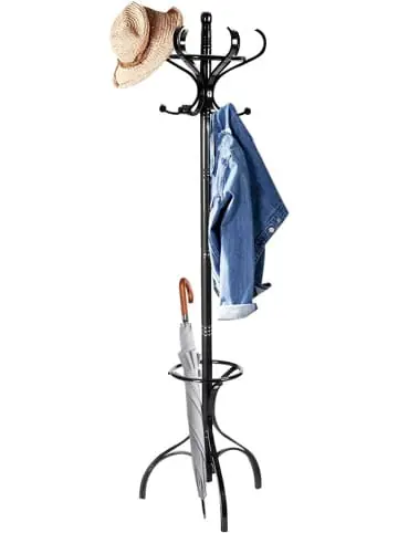 Beschreibung: Das Birkenholz ist besonders stabil und die hochwertige Verarbeitung zeugen von hoher Qualität und tragen zu einer extrem langen Lebensdauer bei. Auf den 12 Haken und dem Schirmständer, lassen sich viele Kleidungstücke aufhängen. Der Jackenständer istschick und stilvoll, sodass er nicht nur ihre Wohnung ordentlich hält sonder ein echtes Schmuckstück darstellt.Eigenschaften: Großer Stauraum mit 12 Haken und einem Schirmständer Dank hochwertiger Materialien stabil, robust und langlebig Vielfältig einsetzbar wie z.B. am Eingang, Flur oder im Büro Glatt lackiert und kratzfrei, damit ihre Kleidung einwandfrei bleibt Elegantes und schönes Aussehen, passt zu fastjeder Dekoration perfekt Dan kleichtem Gewicht ist einfach zu verstellen Mit dem schlanken Korpus besonders platzsparend Material: Birke, Pappel Maße: 182 x 47,5 x 47,5 cm Gewicht: ca. 3kg Belastbarkeit: 10 kgLieferungsumfang: 1 x Garderobenständer 1 x Anleitung