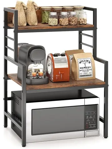 Beschreibung: Entdecken Sie das Geheimnis einer schön organisierten und stilvollen Küche mit unserem schicken 3-stufigen Thekenregal! Dieses kompakte Regal wurde fachmännisch zur Platzoptimierung entworfen und passt perfekt in die meisten Küchenbereiche. So können Sie sich von Unordnung befreien, indem Sie Ihre wichtigsten Gegenstände von Gewürzflaschen bis hin zu kleinen Geräten dort aufbewahren. Mit seiner robusten, robusten Metallkonstruktion und der rustikalen Holzmaserung ist es ebenso langlebig wie atemberaubend und mit Sicherheitsgeländern und verstellbaren Fußpolstern für Stabilität bei jeder Berührung ausgestattet.Eigenschaften: 3-stöckige Aufbewahrungsmöglichkeit für Küchengeräte, Gewürzdosen und Geschirr Vertikales Design nutzt die Arbeitsfläche optimal aus Robuster Metallrahmen bietet langlebigen und zuverlässigen Halt 2 Kippschutzvorrichtungen bieten zusätzliche Sicherheit Verstellbare Fußpolster helfen dem Regal, sich an unebene Flächen anzupassen Geländer schützen Gegenstände auf dem Regal vor dem Herunterfallen Benutzerfreundliche Details sorgen für ein angenehmes Benutzererlebnis Leicht zu reinigende Oberfläche macht die tägliche Reinigungsroutine zum Kinderspiel Material: Holzwerkstoff, Metall Gesamtmaße: 52 x 42 x 78 cm (L x B x H) Maße der unteren Ablage: 48 x 42 x 31 cm (B x T x H) Abstand zwischen 2 Regalebenen: 29,5 cm Tiefe der oberen Ablage: 25,5 cm Höhe Geländer: 10 cm Gesamttragfähigkeit: 50 kg Tragfähigkeit obere Ablage: 20 kg Tragfähigkeit mittlere Ablage: 30 kg Nettogewicht: 8 kgLieferungsumfang: 1 x Küchenregal 1 x Anleitung