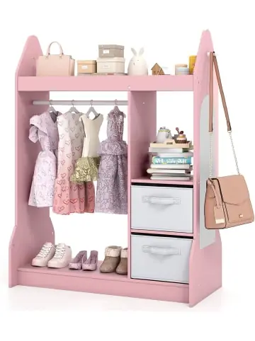 Beschreibung: Suchen Sie nach einer Kindergarderobe, um das Durcheinander all der verteilten Kinderkleidung in Ihrer Wohnung zu reduzieren? Dieses Ankleidezentrum für Kinder kann dieses Problem lösen. Es verfügt über 1 Kleiderbügel aus Massivholz, 1 oberes Ablagefach mit erhöhtem Rand, 2 untere Ablageebenen und 2 offene Regale, in denen Kinder Spielzeug, Kleidung, Hüte, Bücher, Dekorationen, Schuhe usw. platzieren können. Außerdem hilft ein zusätzlicher Spiegel dabei, das Kinder ihre Outfits betrachten können und so ihrer Fantasie freien Lauf lassen können. Diese Kleidergarderobe für Kinder ist aus hochwertigem Massivholz und MDF-Platten für den langfristigen Gebrauch gefertigt. Abgerundete Ecken und verbreiterte Beine sorgen für allgemeine Sicherheit und Stabilität. In der Zwischenzeit ist unser Kinderzimmerschrank eine großartige Ergänzung für das Kinderzimmer oder den Kindergarten, der Kindern hilft, unabhängig zu sein.Eigenschaften: 1 Kleiderbügel zum Aufhängen von Kinderkleidung 1 oberes Staufach mit erhöhtem Rand, 2 untere Staufächer und 2 offene Regale für reichlich Präsentations- und Stauraum Angemessene Höhe von 100 cm und offenes Design für eine bequeme Verwendung Kindersicherer Spiegel in perfekter Größe hilft Kindern, ihre Outfits zu betrachten Hochwertige Massivholz- und MDF-Platten für hohe Haltbarkeit Verbreiterte Beine mit verstärkten Schrauben für hervorragende Stabilität Abgerundete Ecken schützen Kinder vor Kratzern Es hilft Kindern, eine gute Angewohnheit des Organisierens zu entwickelnEinfach zu montieren und zu reinigen Material: MDF, Massivholz Gesamtmaße: 93,5 x 38 x 100 cm (L x B x H) Spiegelgröße: 70 x 20 cm Geeignetes Alter: ab 3 Jahren Belastbarkeit jeder Ablage: 20 kg Bruttogewicht: 16 kgLieferungsumfang: 1 x Kleidergarderobe für Kinder 1 x Anleitung