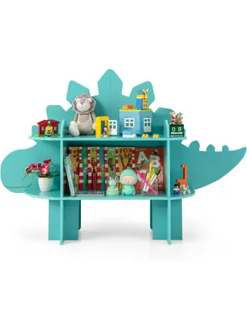 Beschreibung: Schaffen Sie eine entzückende Leseecke für junge Leser mit diesem Dinosaurier Kinder-Bücherregal!!! Es dient nicht nur als Bücherregal für Kinder, um ihre Lieblingsbücher zu verstauen, sondern funktioniert auch gut als Display-Ständer für Kleinkinder, um ihre Schätze zu zeigen. Es kann weit verbreitet im Kinderzimmer, Spielzimmer, Kinderzimmer oder Kindergarten eingesetzt werden. Das Holzbücherregal hat 2 Ebenen offene Regalböden, um den täglichen Aufbewahrungsbedarf von Kindern zu befriedigen. Darüber hinaus ermöglicht eine kinderfreundliche Höhe von 87 cm Ihrem Kind, unabhängig auf seine Bücher und Spielsachen zuzugreifen. Es gibt Anti-Fall-Streben, um zu verhindern, dass Gegenstände herunterfallen. Noch wichtiger ist, dass das Anti-Kipp-Gerät und solide Beine/basis es stabil und nicht leicht wackeln lassen.Eigenschaften: 2 Ebenen von Regalen, um das Kinderzimmer ordentlich zu halten. Sie weist mehrere Regalgrößen für eine geordnete Aufbewahrung auf. Ausreichend Stauraum hilft Kindern, gute Ordnungsgewohnheiten zu entwickeln. Eine Gesamthöhe von 87 cm macht es für Kinder von 3 bis 12 Jahren geeignet. Das Aussehen von Dinosaurier zieht die Blicke der Kinder auf sich. Der Kippschutz und die Fallschutzabweiser sorgen für sichere Gegenstände. Ideal für Kinderzimmer, Spielzimmer, Kindergarten usw.Technische Daten: Farbe: Grün Material: MDF Anwendbares Alter: 3-12 Jahre Gesamtabmessungen: 133 x 31 x 87 cm (L x B x H) Nettogewicht: 12 kg Gesamttragfähigkeit: 30 kgLieferungsumfang: 1 x Kinder-Bücherregal 1 x AnleitungAchtung! Nicht geeignet für Kinder unter 3 Jahren.