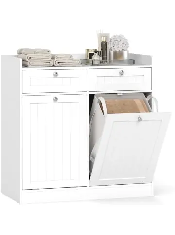 Beschreibung: Machen Sie den Waschtag einfacher mit unserem kipbaren Wäschekorbschrank! Ausgestattet mit einer Schublade und einem Oberfach mit erhöhten Kanten bietet dieser Badezimmerschrank praktischen Stauraum für Ihre Wäscheutensilien, während der versteckte kipparme Wäschekorb schmutzige Kleidung außer Sicht hält. Das Wäschekorb-Fach enthält einen abnehmbaren Stoffbeutel, damit Sie Ihre Wäsche leicht zur Waschmaschine tragen können. Für den täglichen Gebrauch gebaut, verfügt er über sanfte Metallscharniere und Schienen für eine langlebige Qualität, verstärkte Paneele zur Unterstützung der Kleidung und ein Umkippschutzset für mehr Stabilität. Zudem macht die pflegeleichte Oberfläche die Reinigung unkompliziert.Eigenschaften: Oberer Bereich und tiefe Schublade(n) zur Organisation von Badutensilien Erhöhte Kanten am Oberregal schützen Ihre Gegenstände vor dem Herunterfallen Kippbarer Wäschekorb/-körbe zum Verstauen und Sortieren Ihrer Wäsche Abnehmbarer und faltbarer Wäschesack/Säcke für einfaches Tragen Verstärkte Paneele und Metallscharniere erhöhen die Haltbarkeit für den täglichen Gebrauch Anti-Umkippset zur sicheren Befestigung des Schranks an der Wand Sanfte Metallführungen und runde Griffe für leichten Zugriff auf die Schublade Leicht zu reinigende Oberfläche spart Zeit bei der Pflege Produktabmessungen: 79 x 40 x 80 cm (L x B x H) Innere Maße der Schublade: 32,5 x 28,5 x 6,5 cm (B x T x H) Innere Maße des Wäschesacks: 29 x 29 x 34,5 cm (L x B x H) Gewicht: 23,5 kgLieferungsumfang: 1 x Wäscheschrank 1 x Anleitung