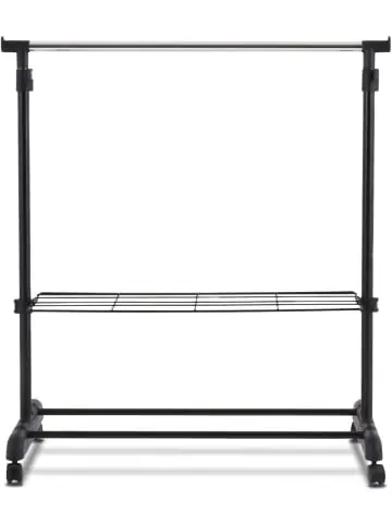 Beschreibung: Unser Kleidungsständer kann Ihre Hemden, langen Kleider, Schuhe und Taschen aufbewahren. Der Kleiderständer besteht aus hochwertigen Stangen und schwarz gespritzten Kunststofftuben. Der Ständer kann Ihren täglichen Bedarf an Kleidung problemlos decken und besitzt ein stabiles Gestell, das nicht leicht wackelt oder fällt. Mit diesem flexiblen ausziehbaren Kleiderständer können Sie Ihr Leben bequem gestalten.Eigenschaften: Einstellbare Höhen zum Verstauen von kurzen und langen Kleidungsstücken Zusätzlicher Stauraum unten, um Schuhe und Taschen zu platzieren Stabile Basis erhöht die Stabilität des Kleiderständers Der Kleiderständer lässt sich mit 4 Universalrädern leicht an verschiedene Orte bewegen 2 Räder mit Bremsen erleichtern das Abstellen des Kleiderständers an der gewünschten Stelle Einfach zu montieren und abzubaue Einfaches und modernes Design passt perfekt zu Ihrer Inneneinrichtung Material: Stahl, Kunststoff Maße: 84 x 42 x 92-168 cm Raues Gewicht: 2,52 kgLieferungsumfang: 1 x Kleiderständer 1 x Anweisung