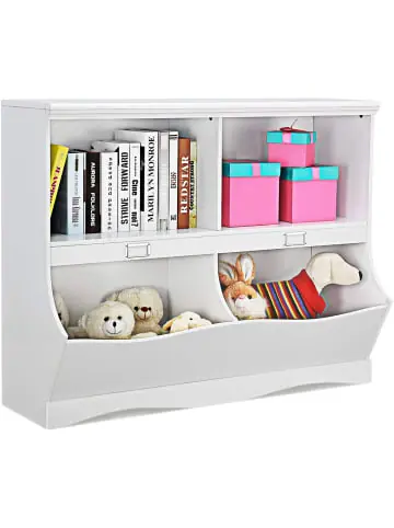 Beschreibung: Möchten Sie sich von der Unordnung im Zimmer verabschieden und gleichzeitig eine niedliche Dekoration für das Zimmer Ihres Kindes haben? Unser Spielzeugregal mit mehreren Fächern passt genau zu Ihren Wünschen. In diesem Regal können die Kleinen all ihre Lieblingsspielzeuge oder Bücher unterbringen. Es ist ein gutes Werkzeug, um Kindern beizubringen, ihre eigenen Dinge zu ordnen und zu klassifizieren. Dieses aus langlebiger und umweltfreundlicher MDF-Platte gefertigte Regal schadet der Gesundheit Ihrer Kinder nicht und ist langlebig. Dieses Bücherregal kann verschiedene Dinge aufbewahren und klassifizieren, egal ob Bücher oder Spielzeug. Verleihen Sie dem Zimmer Ihres Kindes mit unserem multifunktionalen Spielzeugregal eine niedliche und unterhaltsame Möglichkeit, Ordnung zu halten.Eigenschaften: Multifunktionales Regal, nicht nur für Kinder, sondern auch für Erwachsene Großer Stauraum mit großzügiger Ablagefläche, 2 Fächern und 2 Behältern Umweltfreundliches MDF-Plattenmaterial, gesund und langlebig Detailliertes Design in der Mitte des Regals zum Platzieren einer Namenskarte Perfekt für die Präsentation von Büchern, Zeitschriften und Spielzeug Mit Sprühlackierung, sowohl schön als auch langlebig Moderner und eleganter Stil, geeignet für Schlafzimmer, Wohnzimmer, Kinderzimmer Material: MDF-Platte Gesamtmaße: 104,5 x 39,5 x 83,5 cm (L x B x H) Nettogewicht: 19,5 kg Tragfähigkeit der Regaloberseite: 30 kg Tragfähigkeit jedes Behälters: 10 kg Tragfähigkeit jedes Fachs: 10 kgLieferungsumfang: 1 x Spielzeugregal